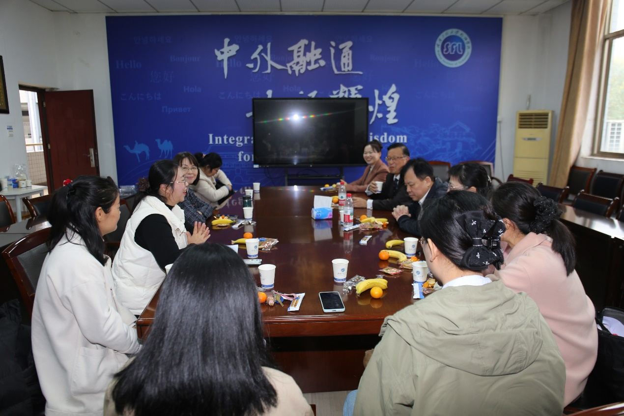 座谈会上,谢玲玲主任和各位老师向张新生教授汇报了专业建设成果,特别提到近年来,汉语国际教育专业人才培养质量持续提升,毕业生就业率保持高位稳定,考研深造成果显著。多人考取北京大学、武汉大学、浙江大学、厦门大学、华中科技大学、华中师范大学、山东大学等国内双一流高校硕士研究生,同时每年均有优秀毕业生赴英国爱丁堡大学、杜伦大学等海外知名学府深造,展现出扎实的专业功底和良好的发展潜力;先后培养出李蹊、曾庆富两位“长江学子”,其中曾庆富扎根基层服务乡村振兴的事迹入选全国第五届“闪亮的日子—青春该有的模样”大学生就业创业人物事迹,李蹊先后援藏支教、捐髓救人,以不同方式践行新时代青年的责任担当,生动体现了专业“为党育人、为国育才”的丰硕成果。