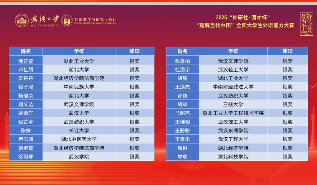 本网讯 (通讯员 徐昕慧) 2025年11月1日,2025年“外研社•国才杯”“理解当代中国”全国大学生外语能力大赛(湖北赛区)口笔译组湖北省复赛在武汉大学顺利举行。