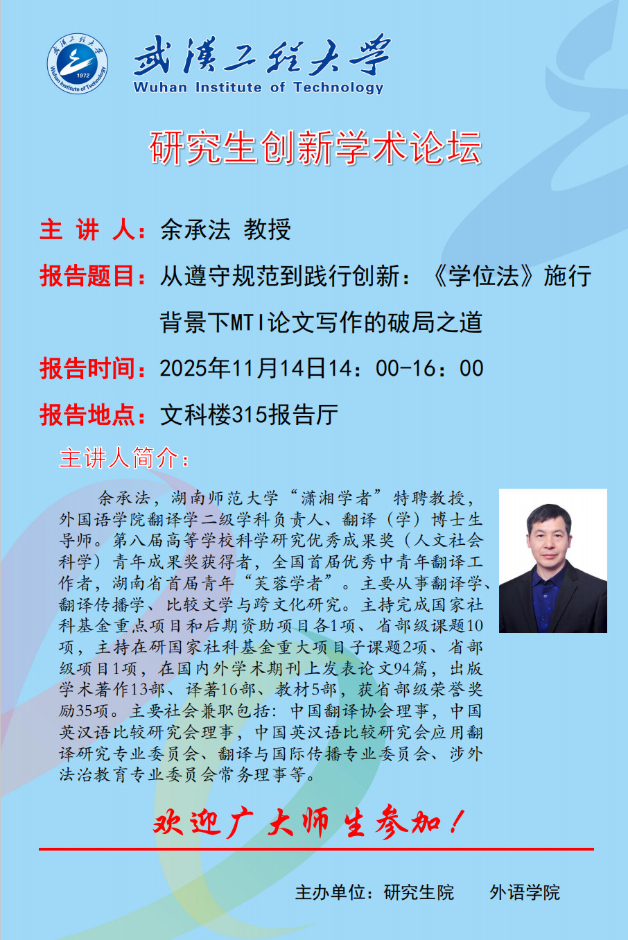 题目:从遵守规范到践行创新:《学位法》施行背景下MTI论文写作的破局之道